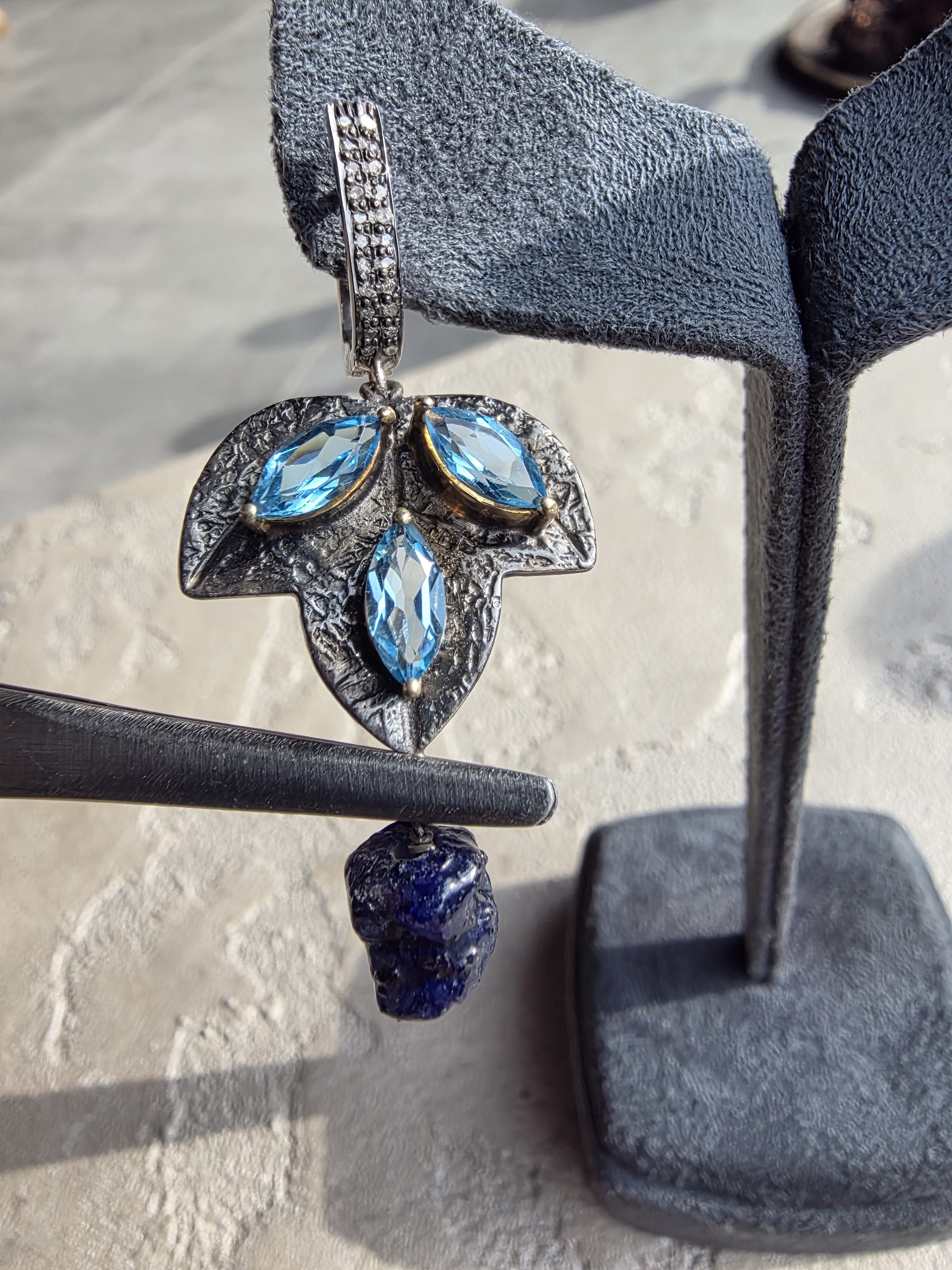 Safir Topaz Elmas Küpe